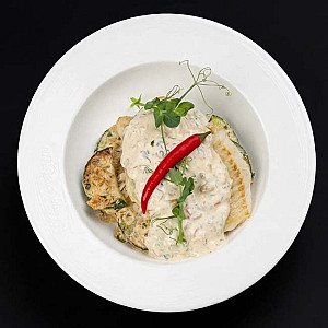 Ига яки с сырным соусом