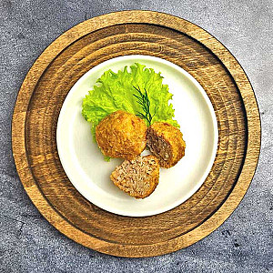 Говядина, свинина, яйцо куриное, молоко, сухари панировочные, перец молотый, масло подсолнечное, лук репчатый, зелень, соль, соус (томаты свежие, лук репчатый, морковь, чеснок, приправа, томатная паста, сливки 20%.