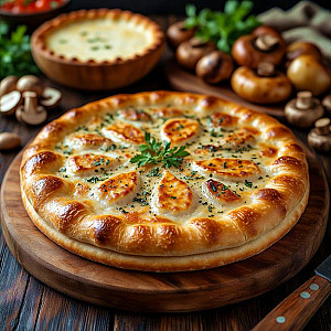 Осетинский пирог с адыгейским сыром — это воплощение простоты и изысканности одновременно. Тонкое, воздушное тесто нежно обнимает мягкую сырную начинку, которая плавится при выпечке и превращается в ароматное золотистое сердце пирога. Адыгейский сыр дарит особую сливочную нежность и лёгкую кислинку, создавая вкус, который невозможно забыть.